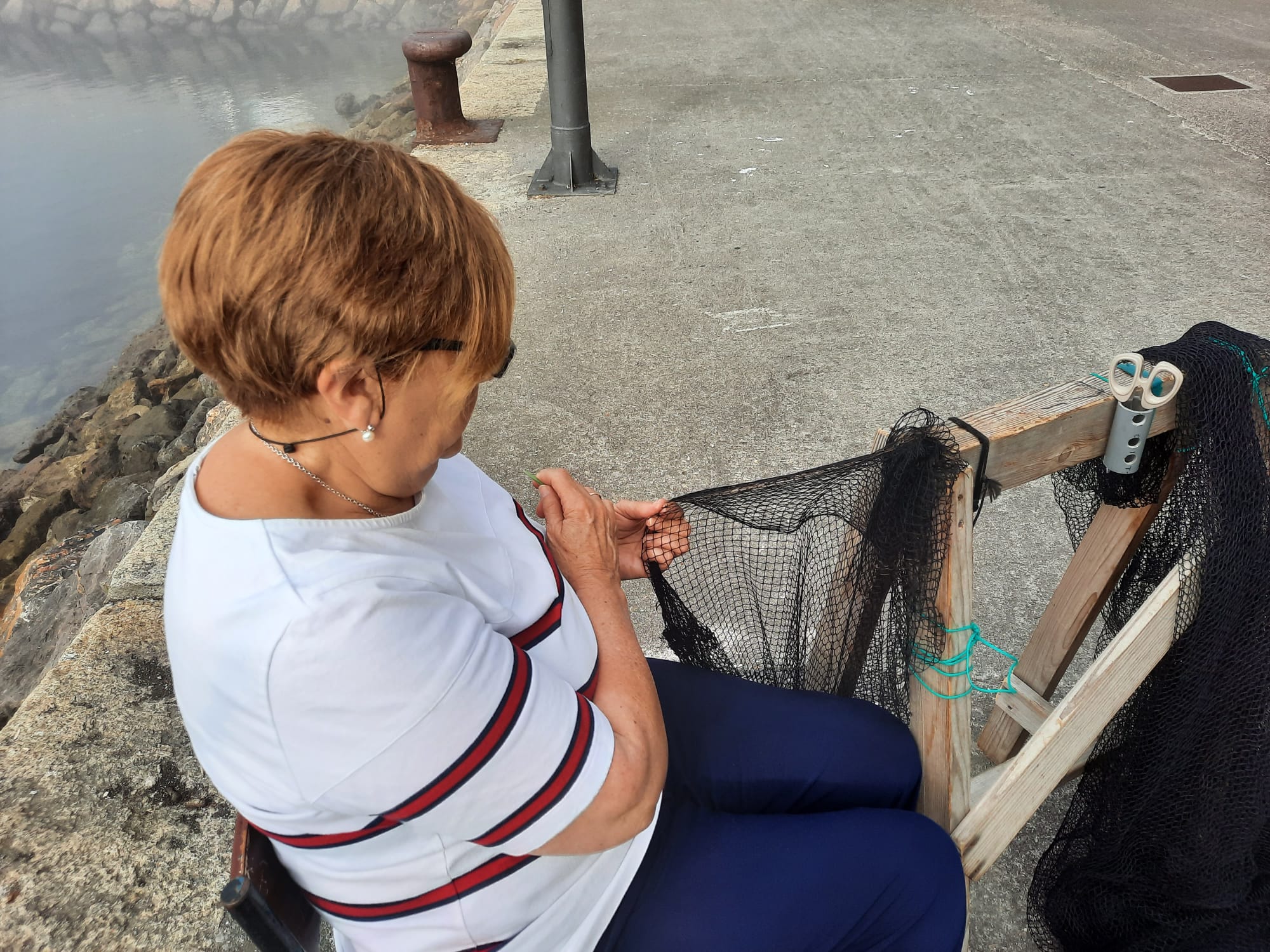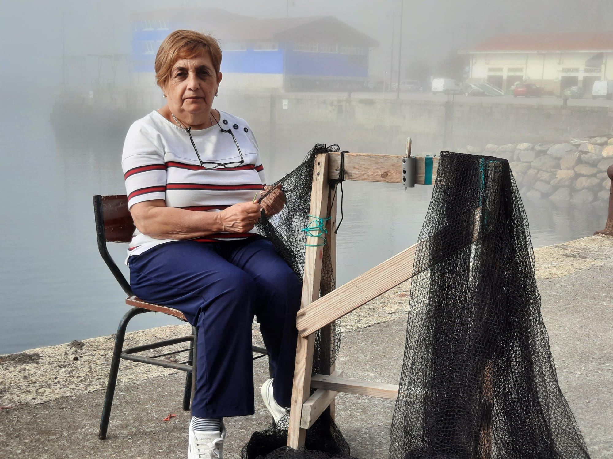 Hace 30 años que se apuntó a un curso y lleva desde entonces en el oficio. No pudo entrar en uno anterior que organizaba la Cofradía: solo eran beneficiarios los hijos de pescadores, pero no las esposas. Dice que de aquel curso no se incorporó nadie a la labor.
