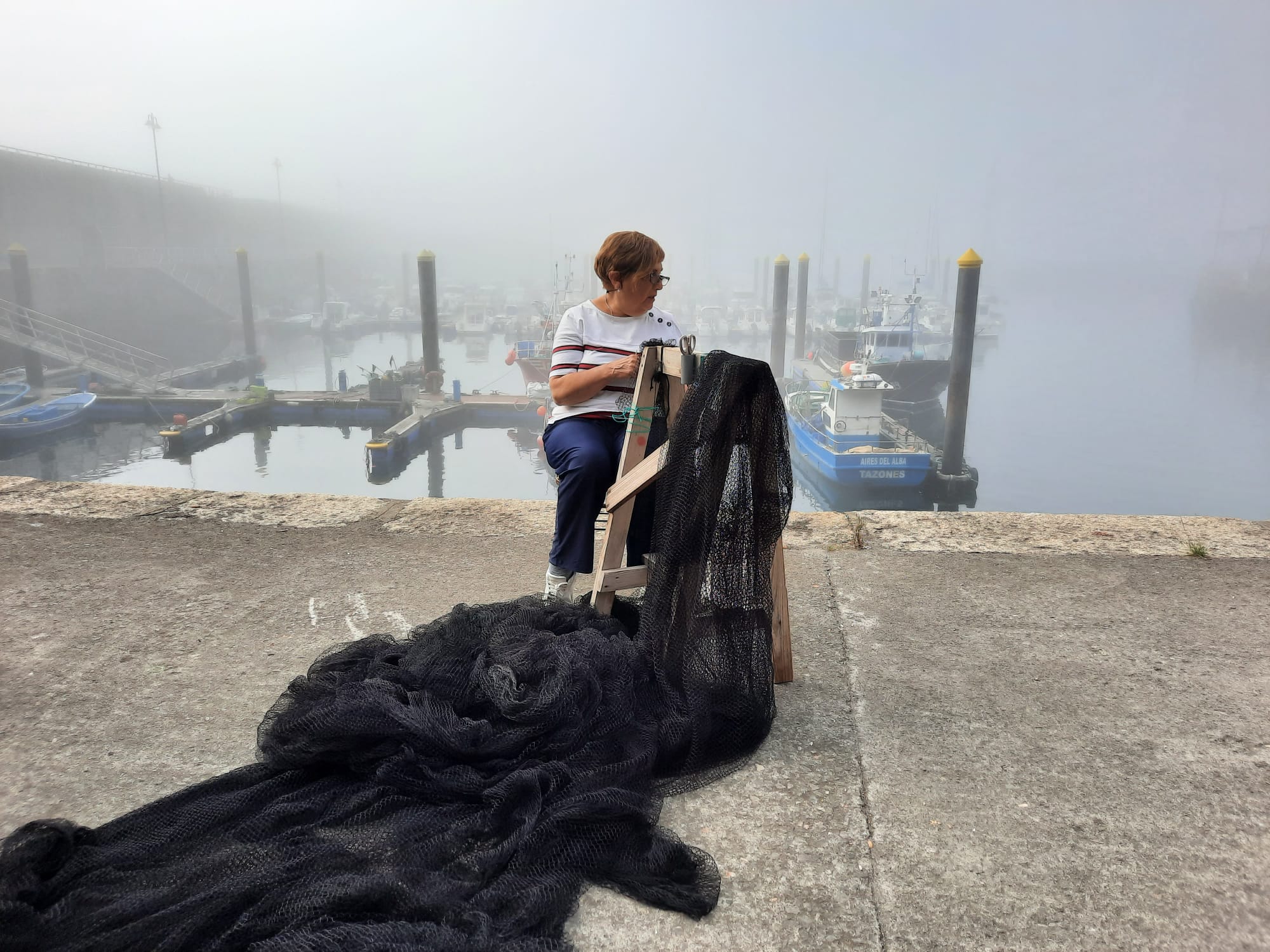 La de Teté es una historia de lucha y resiliencia. Ahora está sola en el negocio, ya que las compañeras ya están retiradas: a una de ellas le dio un ictus, a la otra la retiraron por enfermedad. Y es que ésta es un profesión que pasa factura: muchas horas sentadas a la intemperie, haga frío, sol o llueva. “Lo peor de mi trabajo, aunque a mí me encanta, es que hace mucho frío o mucho calor, y lo tienes que pasar. Cuando había más barcos, cosíamos a bordo en la mar. Pero nunca se nos reconoció la enfermedad laboral hasta hace muy poco. Ni ningún coeficiente reductor”. Uno de los grandes logros conseguidos por la red formada por las rederas del norte.