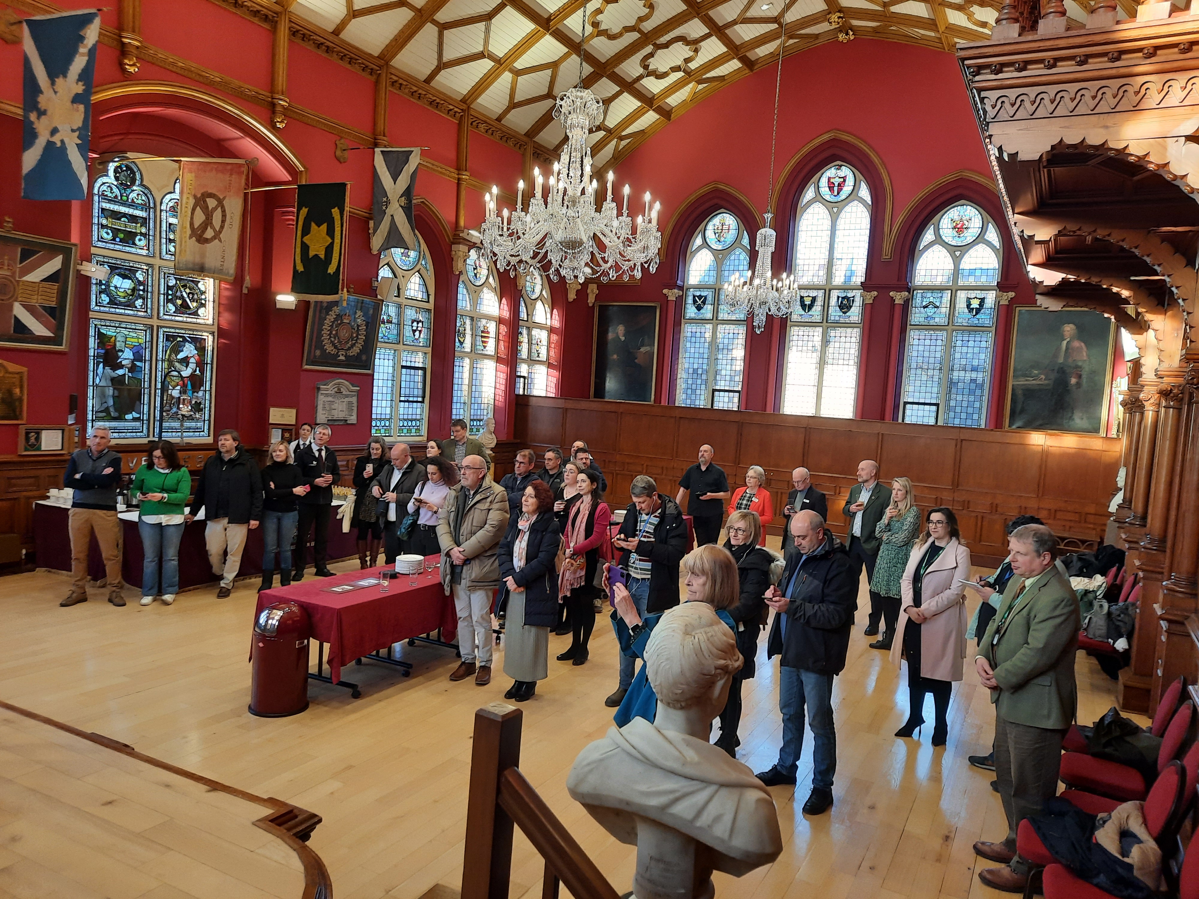 La jornada concluyó con una recepción oficial en el Ayuntamiento de las Tierras Altas y las Islas, en Inverness, con la recepción encabezada por la provoste Glynis Campbell-Synclair.