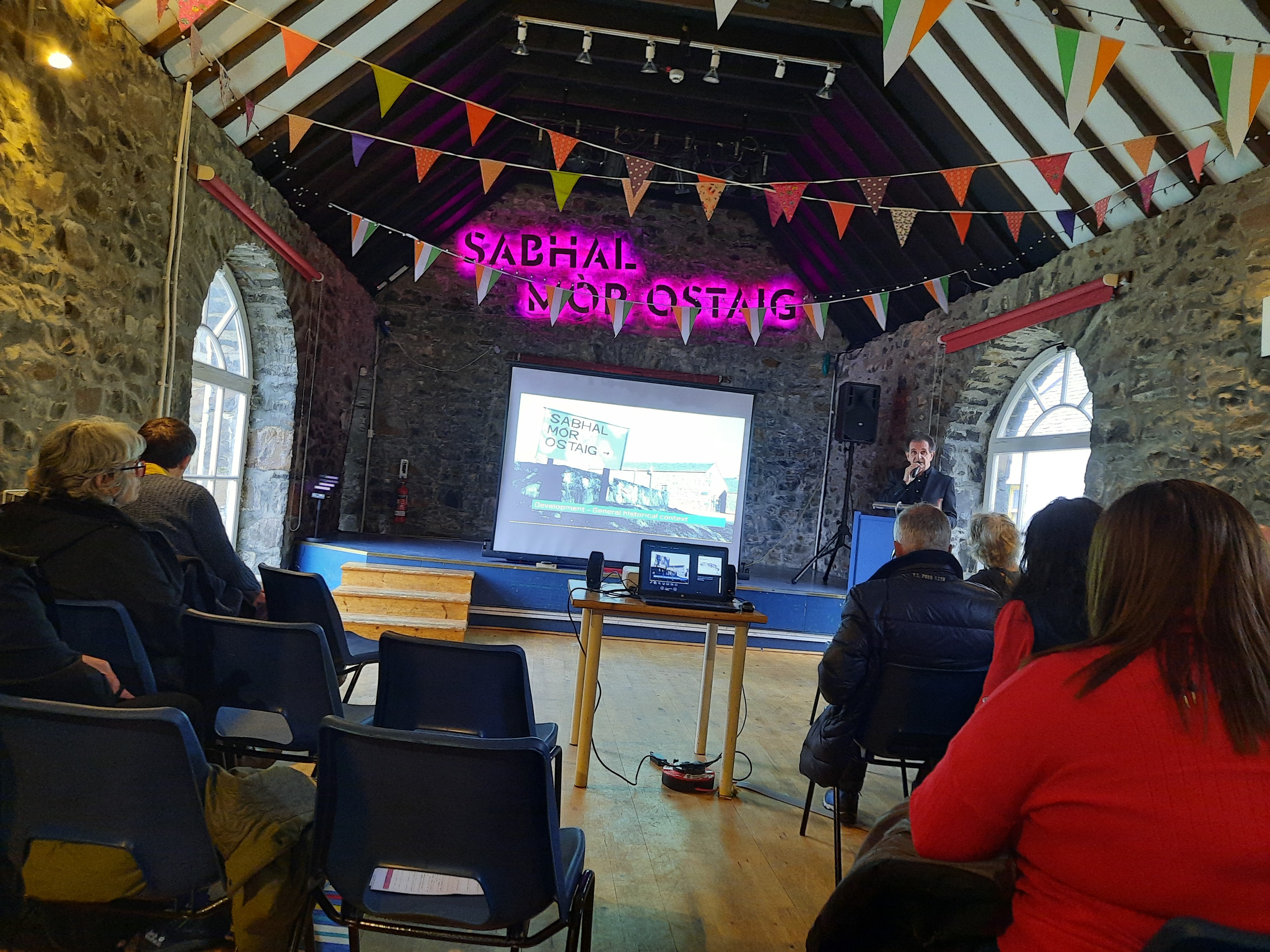 Señaló que la emigración dejó terrenos que fueron ocupados por personas con más poder económico llegadas de otros lugares y la dificultad para encontrar vivienda a las personas jóvenes de Skye u otras que quieren asentarse en la zona. De ahí que el propio centro educativo es promotor de una comunidad de viviendas, un housing, asequible y comunitario, también contemplado como un proyecto educacional.