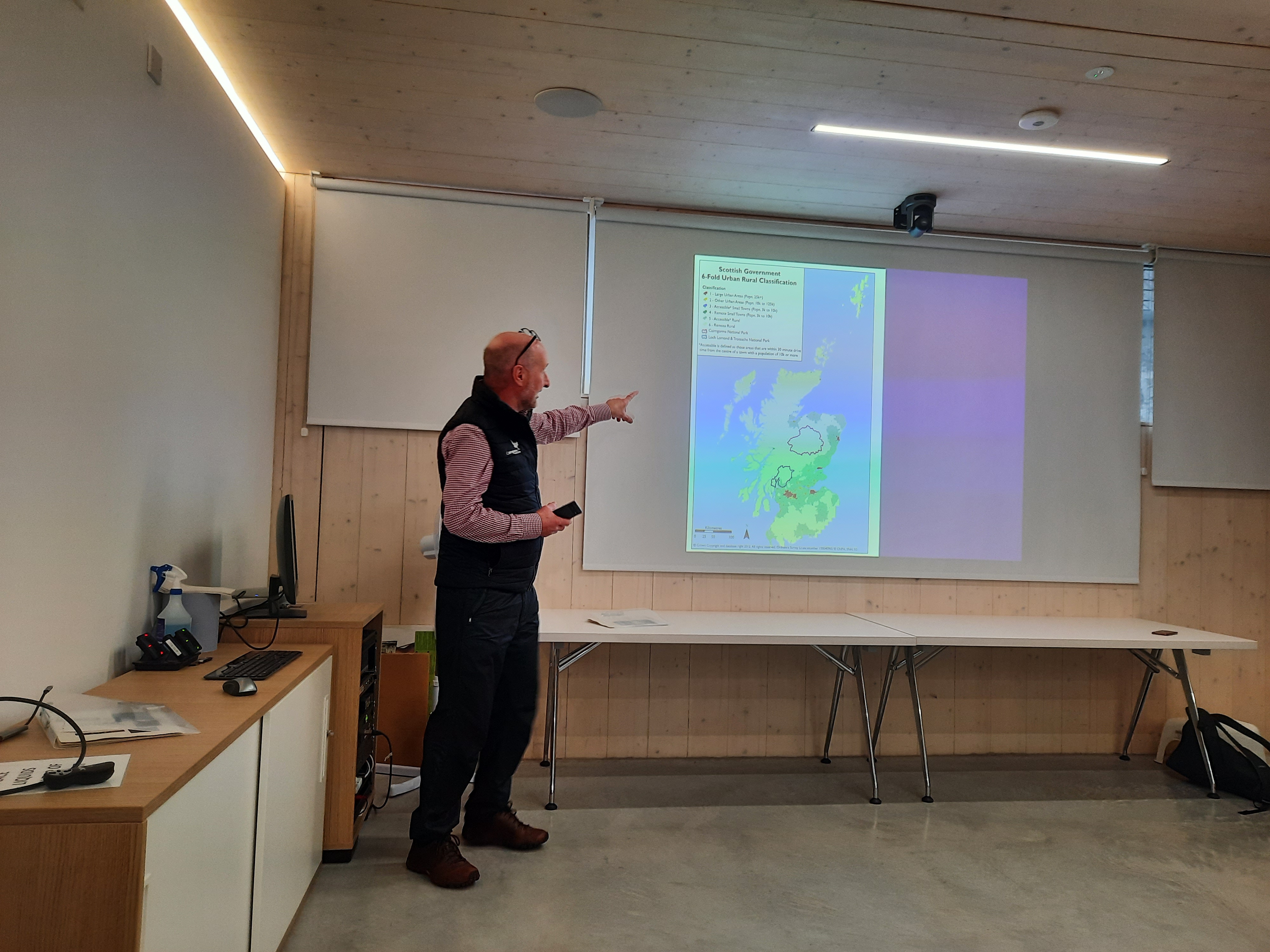 La jornada arrancó con la visita a las instalaciones del Parque Nacional de Cairngorms (PNC) en Grantown, donde nos pusieron en contexto tanto del Parque como del propio entorno y de la comunidad, así como su implicación.