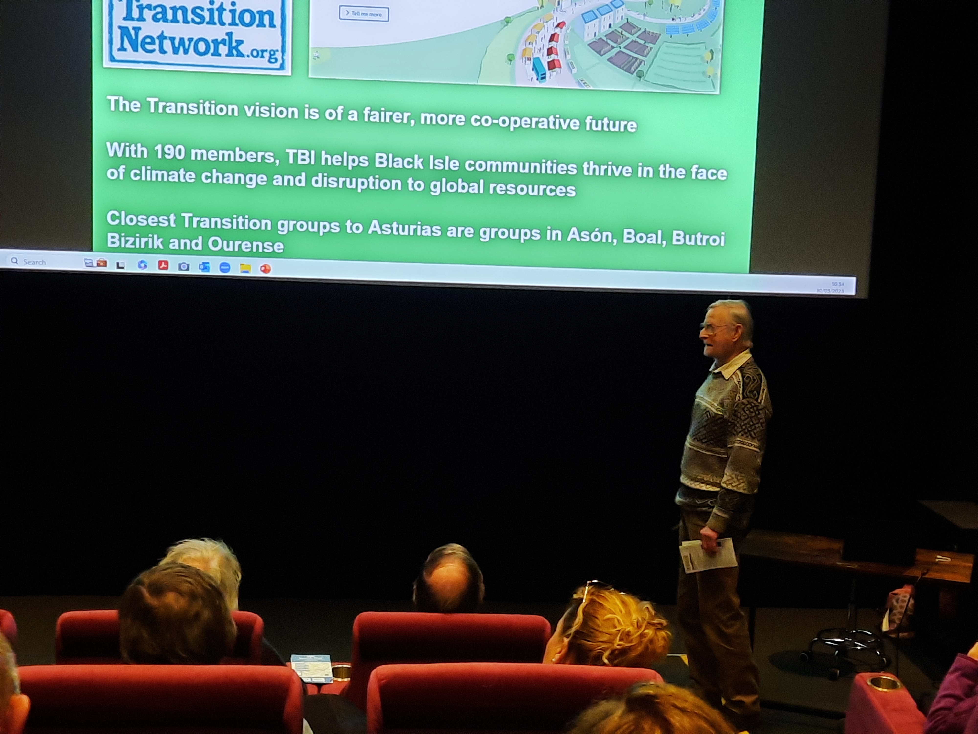 Por su parte el presidente de la asociación Transition Black Isle, Julian Paren, se centró en temas medioambientales de emisión 0 y en procesos de concienciación medioambiental y de agricultura responsable, con sus mercados temáticos agrarios. Reconocen haber fallado en proyectos de energía comunitaria y se mostró escéptico respecto a la actuación de los gobiernos para resolver problemas de la comunidad, por lo que reivindicó el poder de la sociedad civil como motor. Transition Black Isle forma parte de un movimiento internacional por una transición ecológica.